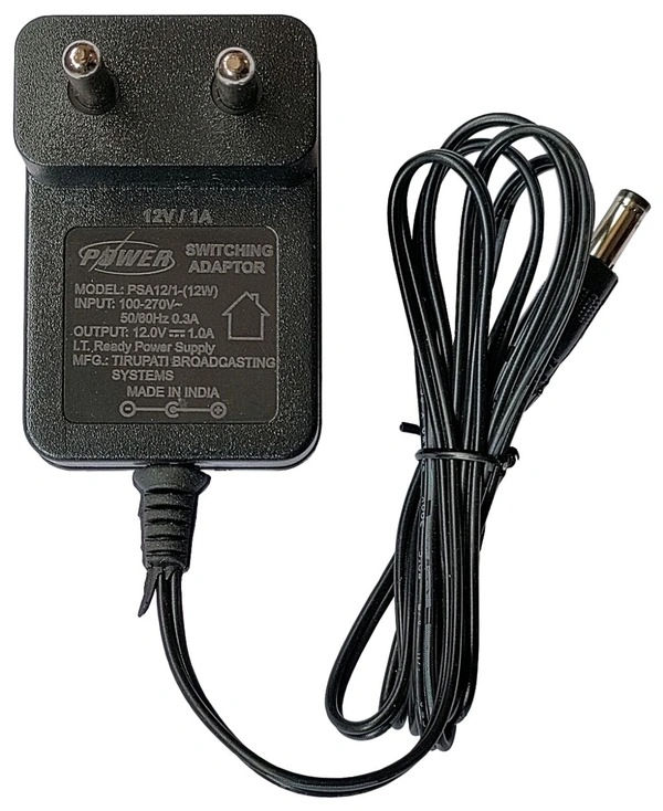 The 12V 1A AC-DC adapter is a compact, high-efficiency